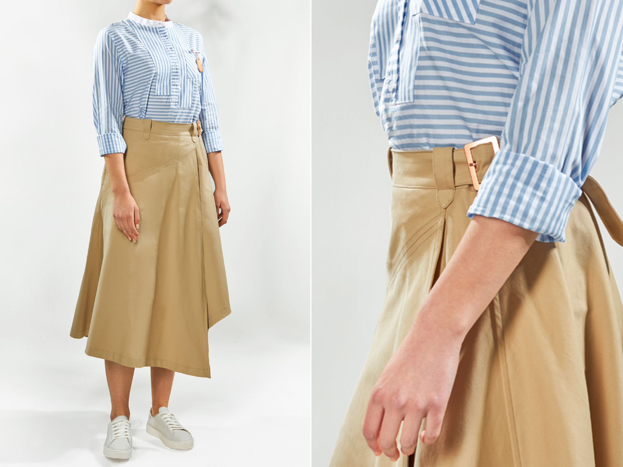 Much loved by the client we then progressed into our design phase that focussed on a contemporary, fashion-led look. Inspired by trendsetters Commes de Garcon and their Dover Street Market London store, we created contemporary coats and overcoats that cleverly displayed the interiors on their exterior. Stripes also had the designer treatment, well known as vintage prison attire, Studio 104 took a playful direction to stripes which flowed through a large part of the uniform collection.