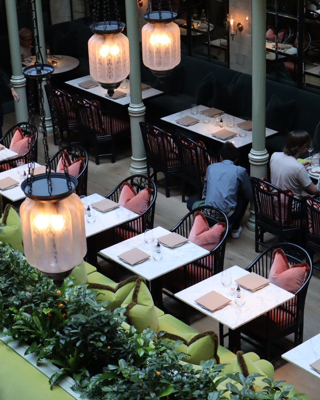 Along with taking in the uniforms, we also had some divine plates of food and took a few photographs of the stunning interiors. The décor is contemporary yet timeless with shades of green and hints of pink that are enhanced by the bright, plant-filled atrium.